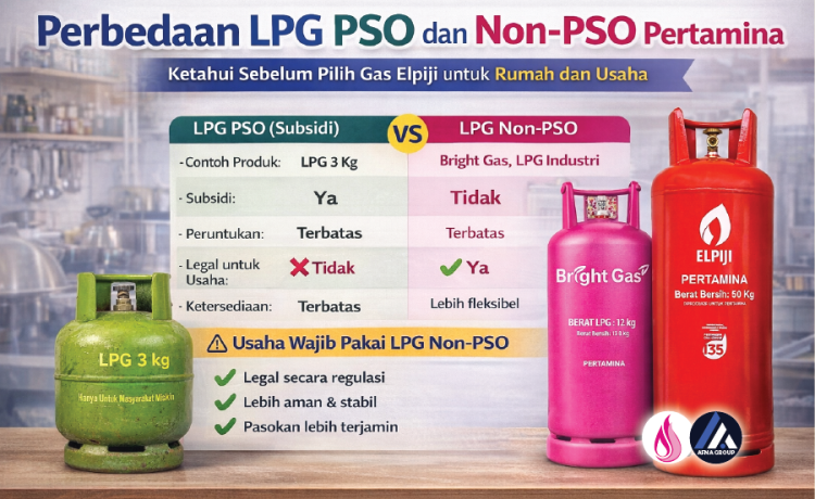 Masih banyak masyarakat dan pelaku usaha yang bingung membedakan LPG PSO (Public Service Obligation) dan LPG Non-PSO Pertamina. Padahal, pemilihan jenis LPG yang tepat sangat berpengaruh terhadap legalitas penggunaan, keamanan, serta kelancaran distribusi gas.