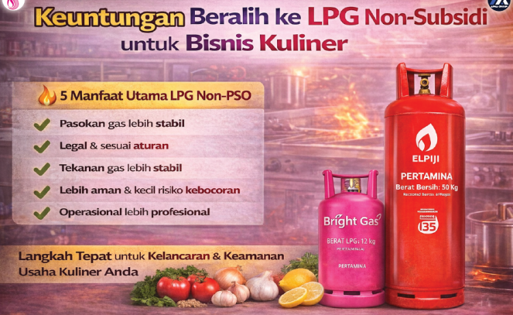 LPG non-subsidi memang diperuntukkan untuk kebutuhan bisnis, restoran, hotel, hingga industri. Dengan menggunakan LPG non-PSO usaha lebih sesuai aturan, menghindari risiko sanksi penggunaan gas subsidi, dan memberikan citra bisnis yang lebih profesional.