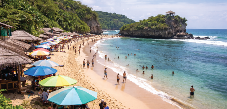 Pantai Indrayanti Jogja terkenal dengan pasir putih bersih, laut biru, dan fasilitas wisata lengkap. Salah satu pantai terbaik di Gunungkidul untuk liburan keluarga dan rombongan.